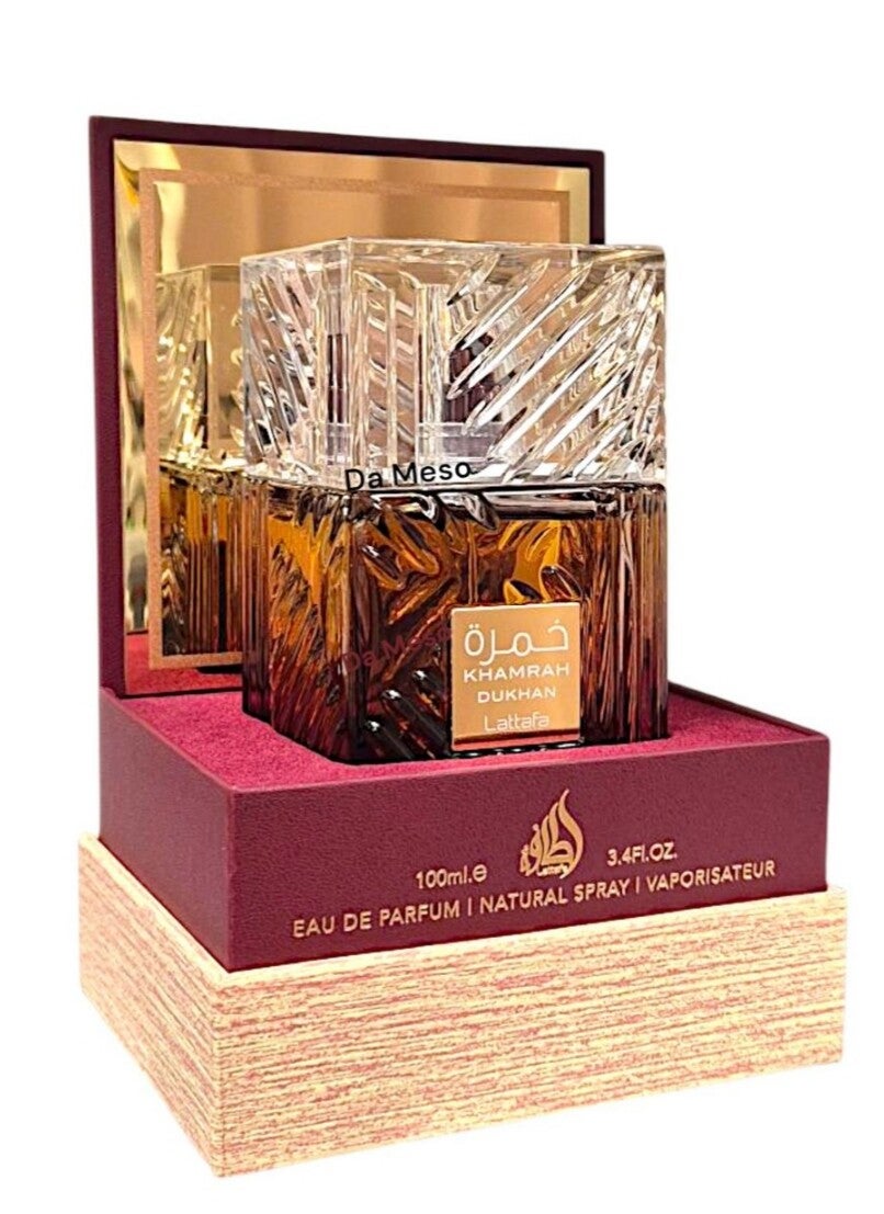 Khamrah Dukhan – Die Verkörperung von Rauch und Raffinesse Khamrah Dukhan, benannt nach dem arabischen Wort für „Rauch“, ist eine Hommage an die uralte Kunst des Parfümrauchens im Nahen Osten. Diese moderne Interpretation eines traditionellen Rituals entfaltet eine hypnotische Komposition, die Tiefe, Bewegung und verführerische Intensität vereint.